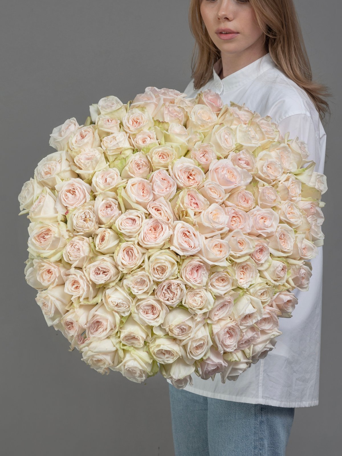 букет из 101 пионовидной розы White O'Hara